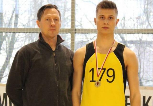 na fot.: trener Waldemar Olszyna i lekkatleta Wiktor Wachowski / UKS 12 Kalisz