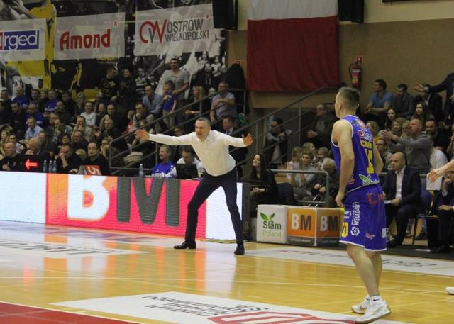 na fot. Trener BM Slam Stali w trakcie meczu "szalał" przy ławce swojej drużyny