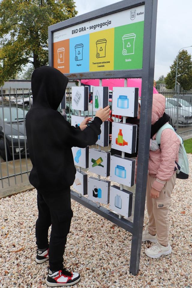 na fot.: uczniowie w czasie lekcji na ścieżce stworzonej w PSZOK-u