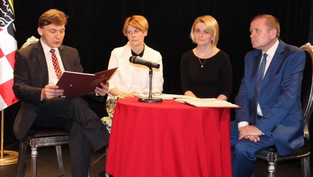 na fot. od lewej: Krzysztof Nosal /starosta kaliski, Mieczysław Łuczak/ przewodniczący Rady Powiatu Kaliskiego