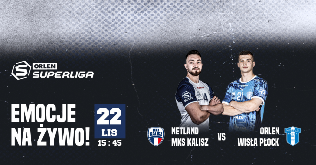 Mecz 12. serii ORLEN Superligi pomiędzy NETLAND MKS-em Kalisz a ORLEN Wisłą Płock w tę sobotę, 22 listopada o godz. 15:45 w hali Arena.