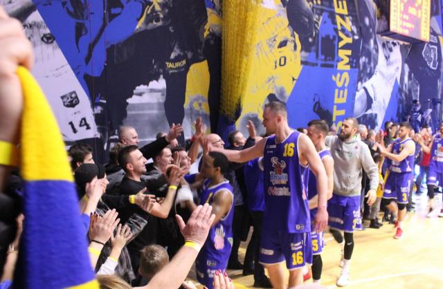 na fot. Po meczu jak zwykle koszykarze podziękowali kibicom za gorący doping